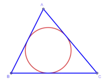 | 2 | Incircle | Circle which touches the sidelines internally | ![]() Incircle of △ABC | |