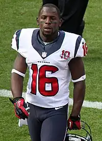 Trindon Jerard Holliday (born April 27, 1986) is a former American football wide receiver and return specialist. He was selected by the Houston Texans in the sixth round of the 2010 NFL Draft. He played college football at LSU. At 5'5", Holliday is one of the shortest players in NFL history.[1] He has also played for the Denver Broncos, New York Giants, Tampa Bay Buccaneers, San Francisco 49ers, and Oakland Raiders.