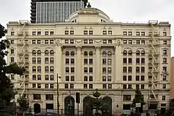The Trinity Auditorium, later known as the Embassy Hotel, is a historic building in Los Angeles, California. It was built as a plant for the Methodist Episcopal Church, South, in 1914. The Los Angeles Philharmonic debuted in this auditorium in 1919. It was used for jazz and rock concerts as well as labor union meetings from the 1920s to the 1950s. It was an annex of the University of Southern California from 1987 to 1998, when it was sold to the New York-based Chetrit Group. As of 2015, it has been vacant for more than a decade, with plans to remodel it into a new hotel.