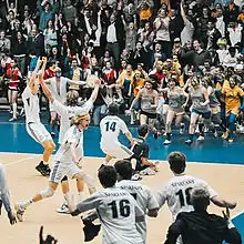 The Trinity Western Spartans men's volleyball team is a university varsity volleyball program in Canada that represents Trinity Western University, competing in the Canada West Universities Athletics Association of U Sports.[1][2] Based out of Langley, British Columbia, the Spartans play their home games at the Langley Events Centre, a multi-sport facility close to the main campus. Led by then head coach Ron Pike, the Spartans won their first ever National Championship in 2006, defeating the University of Alberta Golden Bears in the final by a score of 3–0. Since then, the Spartans have won six more championships, for a total of seven, hoisting the Tantramar Trophy again in 2011, 2012, 2016, 2017, 2019, and 2023. The Spartans were led by head coach Ben Josephson from 2007 to 2022 before he took over as the head coach for Canada's men's volleyball program. Adam Schriemer and Ben Ball are now the interim co-head coaches. In the Canada West conference, the Spartans have won the league title seven times, taking the conference championship in 2007, 2012, 2016, 2017, 2018, 2020, and 2022.