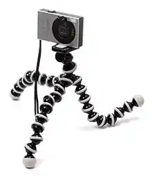 A tripod with flexible legs permitting it to grip to some objects.