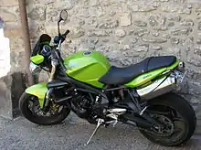 The Triumph Street Triple is a naked or streetfighter motorcycle made by Triumph Motorcycles, first released towards the end of 2007.[2] The bike is closely modelled on the Speed Triple 1050 but uses a re-tuned inline three cylinder 675 cc engine from the Daytona 675 sport bike, which was released in 2006.[2][3]