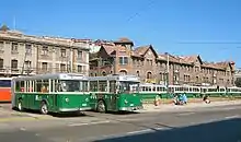 Tampere and Helsinki have had trolleybus systems in the past. In Tampere, trolleybus operations began in 1948 and ended in 1976. At the system's maximum extent seven trolleybus lines operated. Two trolleybuses have been preserved, in the collection of Tampereen kaupungin liikennelaitos.[33] In Helsinki a single trolleybus line was operated, 1949–1974.[34] An attempt to restore trolleybus operation in Helsinki was made in the late 1970s and resulted in the acquisition of a prototype trolleybus which was used between 1979 and 1985.[35] Three Helsinki trolleybuses have been preserved. Of these, number 605 is on display at the Helsinki Tram Museum.[36][37][38] Helsinki is considering restoring trolleybus services.[39]