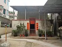 The only surviving portion of the original green-brick boundary wall at the main entrance of the Wai gives visitors an insight into the walled village's historical outlook.[1] Tin Hau, Kwan Tai and a Qing official are worshipped in the village shrine.[7]