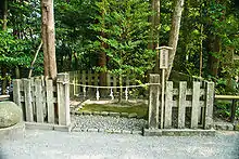 Near Shirahata Jinja one can also find the Yui Wakamiya Yōhaijo (由比若宮遥拝所), literally the "Yui Wakamiya Pray-at-a-Distance Place" (see photo). This facility, originally created for the shōgun's benefit, allows one to worship at distant Yui Wakamiya (Moto Hachiman) without actually going all the way to Zaimokuza.[8][10]