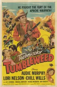 Tumbleweed is a 1953 American Western film directed by Nathan Juran and starring Audie Murphy, Lori Nelson, and Chill Wills. The film is based on the story "Three Were Renegades" by Kenneth Perkins, originally published in the December 1938 issue of Blue Book. IMDb and other sources [1] mistakenly call the film a remake of the 1948 film Relentless, which was based on a similarly named story, "Three Were Thoroughbreds," by Perkins (originally published in the June 1938 issue of Blue Book; published as a hardcover novel in 1939). The later story, "Three Were Renegades," was published as a sort-of sequel to the earlier story, "Three Were Thoroughbreds," and the plotlines of the two films mirror the plotlines of their respective source stories.