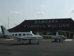 Tunggul Wulung Airport (IATA: CXP, ICAO: WAHL) is an airport which currently serves the city of Cilacap in Central Java, Indonesia. It is located 9 km from the city downtown. There is a small terminal with the large airport name. The airport has one runway, with dimensions of 1,400 metres (4,593 ft) by 30 metres (98 ft) which allows the operation of aircraft up to ATR 72-600.