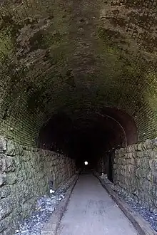Brick-lined interior of the W&A tunnel, now preserved as a walking trail, looking southeast. |