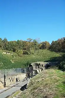 The cut stone northwest face of the W&A tunnel, now preserved as a walking trail. |