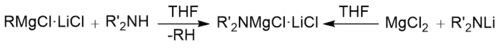 Typically Turbo-Hauser bases are prepared by reacting an amine with a Grignard reagent or by mixing a lithium amide with stoichiometric amounts of MgCl2.