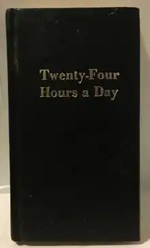 Twenty-Four Hours A Day, written by Richmond Walker (1892-1965), is a book that offers daily thoughts, meditations and prayers to help recovering alcoholics live a clean and sober life.[1] It is often referred to as "the little black book." The book is not official ("conference approved") Alcoholics Anonymous literature.