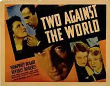 Two Against the World, also known as One Fatal Hour, is a 1936 American melodrama film[1] directed by William C. McGann and starring Humphrey Bogart, Beverly Roberts and Linda Perry. The film is based on the 1930 play Five Star Final by Louis Weitzenkorn and is a much shorter remake of the film Five Star Final, which stars Edward G. Robinson. The main setting has been moved from a newspaper to a nationwide radio network whose owner, Bertram Reynolds, hungry for larger audiences, decides "in the name of public good" to revive the memory of a twenty-year-old murder case, with tragic consequences. The cynical manager of programming, Sherry Scott (Humphrey Bogart), has a crisis of conscience when faced with the deadly results.