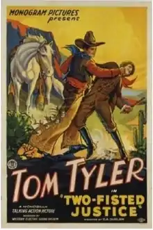 Two Fisted Justice is a 1931 American Western film directed by George Arthur Durlam that takes place during the American Civil War. The film stars Tom Tyler, Barbara Weeks, and William Walling.[1][2]