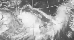 Prior to the typhoon's arrival in the Philippines, all domestic flights in and out of Manila were cancelled; however, international travel was unaffected. The United States Air Force also moved its planes from Clark Air Base to other bases in Asia. Additionally, all schools in Manila were closed.[10] Brushing the coast of Luzon in the Philippines as a Category 3-equivalent typhoon, Nora caused considerable damage in the region.[1] Gale-force winds were measured across much of western Luzon, with a peak reading of 126 km/h (78 mph) at Manila port.[2] These winds caused scattered power and communication losses throughout the Peninsula.[11] The city of Baguio (population 100,000) lost power for approximately six hours.[10] Crop losses were extensive, with the storm striking close to harvest time.[11] Heavy rains from the storm, peaking at 338 mm (13.3 in) in Baguio,[2] triggered significant flooding and caused a breach in the Arnedo Dike in Apalit, Pampanga. Eight towns along a 45 km (30 mi) stretch downstream were flooded; however, roads remained passable. Flooding in Manila also prompted the evacuation of 400 residents.[10] In Caloocan, a child died after being electrocuted by downed wires.[11] Across the Philippines, 24 people were killed and over 1 million were left homeless.[12] Damage to crops and property reached $2 million (1973 USD).[1] Nora was the first of three typhoons to impact the Philippines in the span of a week, with Patsy and Ruth striking the country on October 12 and 15 respectively.[12]