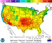 The Summer 2006 North American heat wave was a severe heat wave that affected most of the United States and Canada, killing at least 225 people and bringing extreme heat to many locations. At least three died in Philadelphia, Arkansas, and Indiana.[4] In Maryland, the state health officials reported that three people died of heat-related causes.[5] Another heat related death was suspected in Chicago.[6]