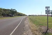 U.S. Highway 24 (US-24) in the state of Kansas runs east–west across the northern half of the state for 435.95 miles (701.59 km). The route mostly connects rural communities across the High Plains of Kansas, while also later providing an Interstate alternate between Topeka, Lawrence, and Kansas City. US-24 both enters and exits the state running concurrently with Interstate 70 (I-70). Along with US-40, the road has largely been replaced by the more modern Interstate in its functionality as a long-distance route.