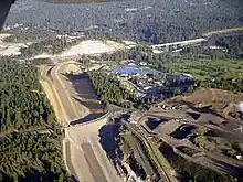 In July 2015, the Connecting Washington transportation package was signed by Governor Jay Inslee, bringing $879 million in state funding for the completion of the North Spokane Corridor project.[13][14] Construction on the southern half began in early 2017 with work on the Freya Street overpass and is the whole project is anticipated to be completed by 2027 or 2029, depending on funding.[8][15][16][17] Grading and paving of a section between Freya Street and Central Avenue was completed in September 2019, but remains closed to traffic.[18]