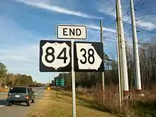 End US 84/SR 38 sign at I-95 east of Midway, Georgia