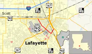 Template:Attached KML/U.S. Route 90 Business (Lafayette, Louisiana)