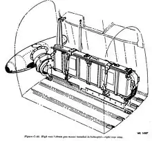 The M3, sometimes referred to as "Aerial Rocket Artillery" (ARA), consisted of two 2.75" 24-Tube rocket launchers, one on either side of the aircraft, along with a Mk 8 sight. The launchers fired in pairs, one from each side to prevent the aircraft from becoming off balance. M3 systems were attached to the helicopter using Bell designed stores racks.[2][3] The only difference between the XM3 and XM3E1 was that the launch tubes on the E1 were 4" longer. The XM3E1 was standardized as the M3.[3]