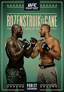 UFC Fight Night: Rozenstruik vs. Gane (also known as UFC Fight Night 186, UFC on ESPN+ 44 and UFC Vegas 20) was a mixed martial arts event produced by the Ultimate Fighting Championship that took place on February 27, 2021, at the UFC Apex facility in Enterprise, Nevada, part of the Las Vegas Metropolitan Area, United States.[2]