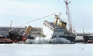 The ships were 172 feet (52.4 m) in length, 32 feet (9.8 m) beam with 11 feet 6 inches (3.5 m) draft displacing 1,130 tons.[2] Early mine planters, at first termed "torpedo planters," had been modeled after USLHS vessels which had similar requirements for handling heavy loads alongside the vessels so that mine planters were easily converted to buoy work.[3]