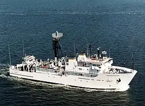 USNS Capable (T-AGOS-16) after removal of SURTASS and addition of AN/SPS-40 air search radar for drug interdiction operations.