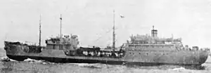 USNS Tonti (T-AOG-76) was a T1 tanker type, Tonti-class gasoline tanker, in operation for the United States Navy from 1948 through 1960. She was originally constructed as MS Tavern for the United States Maritime Commission at the end of World War II, and intended for delivery to the United Kingdom under the terms of Lend-Lease. Although her construction was suspended in August 1945 after the war's end, the ship, renamed Tonti after an early explorer of North America, was completed in December 1945. From June 1948 to July 1960, the tanker was operated by a private company on behalf of the U.S. Navy. After being laid up in 1960, the ship was transferred to Colombia in January 1965. As ARC Mamonal (BT-62), she served the Colombian Navy until 1975, when she was scrapped.