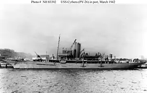 The first USS Cythera (SP-575/PY-26) was a United States Navy patrol vessel that saw service in the Atlantic Ocean during both World War I and World War II.