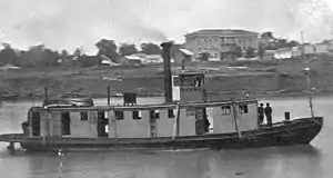 ![]() USS Daisy off Mound City, Illinois, during the American Civil War. The Mound City hospital is in the background. | |