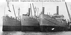 S.S. Lake Arthur (American Freighter, 1918), S.S. Lake Weston (American Freighter, 1918), and S.S. Lake Stirling (American Freighter, 1918) -- listed from left to right