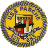 USS Parche (SSN-683), a Sturgeon-class submarine, was the second ship of the United States Navy to be named for the parche /ˌpɑːrˈtʃeɪ/, a small, coral reef butterfly fish. Parche was launched on 13 January 1973, sponsored by Natalie Beshany, the wife of Vice Admiral Philip A. Beshany, and commissioned on 17 August 1974.