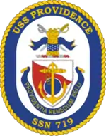 USS Providence (SSN-719), a Los Angeles-class submarine, is the fifth vessel of the United States Navy to be named for Providence, Rhode Island. The contract to build her was awarded to the Electric Boat Division of General Dynamics Corporation in Groton, Connecticut on 16 April 1979 and her keel was laid down on 14 October 1982. She was launched on 4 August 1984 sponsored by Mrs. William F. Smith, and commissioned on 27 July 1985.[3][4]