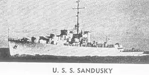 USS Sandusky (PF-54), a Tacoma-class frigate in commission from 1944 to 1945, was the second United States Navy ship of the name and the first to be named for Sandusky, Ohio.[1] She later served in the Soviet Navy as EK-7 and in the Japan Maritime Self-Defense Force as JDS Nire (PF-7), Nire (PF-287) and as YAC-19.