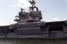 - ↑ Rama, Lisa Woodbury (21 August 2014). "Ex-USS Saratoga Departs Naval Station Newport for Dismantling and Recycling". Retrieved 21 August 2014.