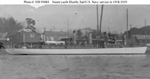 - ↑ Department of the Navy Naval History and Heritage Command Online Library of Selected Images: Civilian Ships: Shuttle (Steam Yacht, 1906). Served as USS Shuttle (ID # 3572) in 1918-1919.