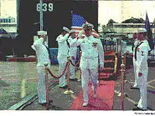 Tautog sailed with the Seventh Fleet (Western Pacific, or WESTPAC) in 1970, making port calls in the Philippines, Hong Kong, Okinawa, Japan, and Korea.[1] Upon return to Pearl Harbor, Tautog was presented the Meritorious Unit Commendation for operations conducted during that deployment, 1 October 1970 to 1 April 1971.[3]