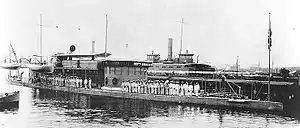 Originally named USS Tippecanoe, after the river in Indiana,[1] USS Wyandotte was a single-turreted Canonicus-class monitor built for the Union Navy during the American Civil War. Completed after the end of the war, Wyandotte was laid up until 1876, although she received her new name in 1869. The ship was commissioned in 1876 and assigned to the North Atlantic Squadron for the next three years. She became a receiving ship in 1879 until she was placed in reserve again in 1885. Wyandotte was on militia duty when the Spanish–American War began and she was recommissioned in 1898 to defend Boston, Massachusetts from any Spanish raiders. The ship was decommissioned after the end of the war and sold for scrap in 1899.