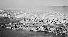 Amphibious Training Bases at and around Oran started in May 1943 under the reverse Lend-Lease with Free France. At the same time, an Amphibious Training Base opened at Ténès and Béni Saf Algeria. After the Tunisian campaign, Oran supported the operation of the Amphibious Training Bases at Bizerte, Tunis, and Ferryville in Tunisia. The towns of Cherchel, Bone, and Mostaganem east of Oran, and Nemours west of Oran became troop staging for upcoming Allied invasions, became the scene of practice invasions. Detachments from the 54th, 70th, and 120th Construction Battalions were responsible for whatever naval establishments were required, but these towns required little in the way of installations.[19][20] A ship's salvage unit, a naval radio station, and a fuel depot were established in Algiers, which was also the site of the headquarters of Vice Admiral H.K. Hewitt, USN, Commander Naval Forces in Northwest African Waters. The two most common amphibious ships used at the base were Landing Ship, Tank (LST), Landing Craft Infantry (LCI), LCP boats, Landing craft tank and Landing Craft Mechanized boats.[1][21][22][23] The lessons of North Africa helped in improving the future landing and battles of World War II.[24]