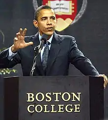 On June 2, 2006, Obama delivered the commencement speech at the University of Massachusetts Boston. Among other topics, he discussed his keynote address to the 2004 Democratic National Convention in Boston.[43]