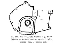 The Ottoman forces then withdrew back to Bosnia in 1689 and the whole area, including the Udbina Castle, became part of the Croatian Military Frontier.[8] In the aftermath of Peace of Sistova, the castle lost its military significance as borders were moved further east. From that point on, it was used as a source of construction material for local people.[9] During the course of 19th century it was left for a slow and continuing ruination.[10]