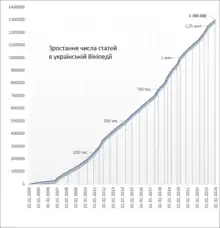 Growth in the number of Ukrainian Wikipedia articles