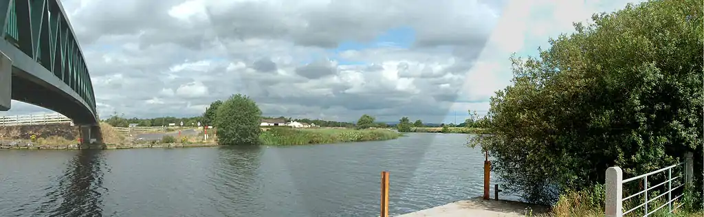 Panoramic view of the River Blackwater, picture taken of Maghery bridge, Armagh. On the far side of the river is Derrylaughan, Tyrone