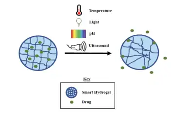 - 1 2 3 4 5 Sun, Yi; Chen, Le-Gao; Fan, Xiao-Ming; Pang, Jian-Liang (2022-10-22). "Ultrasound Responsive Smart Implantable Hydrogels for Targeted Delivery of Drugs: Reviewing Current Practices". International Journal of Nanomedicine. 17: 5001–5026. doi:10.2147/IJN.S374247. PMC 9586127. PMID 36275483.