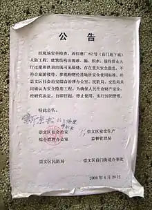 The Underground City (Chinese: 地下城; pinyin: Dìxià Chéng; Wade–Giles: Ti4-hsia4 Chʻêng2) is a Cold War era bomb shelter consisting of a network of tunnels located beneath Beijing, China. It has also been referred to as the Underground Great Wall since it was built for the purpose of military defense. The complex was constructed from 1969 to 1979 in anticipation of a nuclear war with the Soviet Union, as Sino-Soviet relations worsened[1][2] and was officially reopened in 2000.[3] Visitors were allowed to tour portions of the complex,[3] which has been described as "dark, damp, and genuinely eerie".[4] Underground City has been closed for renovation since at least February 2008.[1]