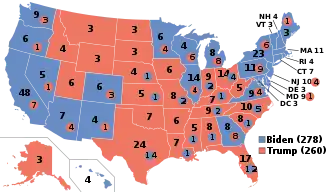 Since 1964, there have been 538 electors. States select 535 of the electors, this number matches the aggregate total of their congressional delegations.[19][20][21] The additional three electors come from the Twenty-third Amendment, ratified in 1961, providing that the district established pursuant to Article I, Section 8, Clause 17 as the seat of the federal government (namely, Washington, D.C.) is entitled to the same number of electors as the least populous state.[22] In practice, that results in Washington D.C. being entitled to 3 electors.[23][24]