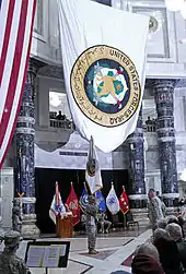 General Ray Odierno of the U.S. Army salutes the newly unfurled USF–I flag during the command's activation ceremony in January 2010.