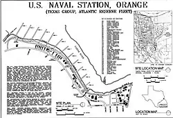 United States Naval Station Orange, later Texas Group, Atlantic Reserve Fleet and US Naval Reserve Orange was a major United States Navy shipyard in Orange, Texas on the Sabine River. The shipyard opened on August 24, 1940, to manage the construction of 24 landing craft. To support the shipyards the navy built new naval offices, barracks and civilian housing. The Navy built twelve piers in the Sabine River at the Base. U.S. Naval Station Orange also worked with the civilian shipyards in Texas during World War II. Major civilian shipyards were: Consolidated Steel Corporation, Levingston Shipbuilding Company, and Weaver Shipyards. At the end of the war in November 1945 the shipyard was closed and the base was turned into the Texas Group, Atlantic Reserve Fleet with 250 ships.