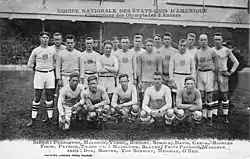 Following the end of World War I, the U.S. participated in the Inter-Allied Games where they defeated Romania, before losing to a France XV side, a match in which no caps were awarded.[11] Rugby union had not been played competitively in most of the U.S. for more than a decade before the 1920 Olympics. The U.S. Olympic committee decided that because "California is the only state playing Rugby in the US, the Committee will give sanction but no financial aid". Harry Maloney, coach at Stanford University and then-president of the California rugby union, assembled a mostly California-based team, with seven players from Stanford and six from the University of California, Berkeley.[12][13][14][15] The Olympic Games Committee of the Amateur Athletic Union paid the expenses to transport the team from California to the games in Antwerp.[16] By the time the US Rugby team arrived in Europe, Czechoslovakia and Romania had withdrawn from the competition. France and the U.S. were the only teams left to compete. The U.S. won a shock 8–0 victory over France to earn the gold medal.