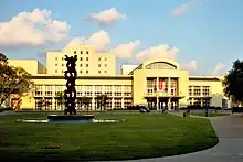 The Cullen Performance Hall is a 1,612 seat proscenium theater which offers a variety of events sponsored by departments and organizations at the university in addition to contemporary music concerts, opera, modern dance, and theatrical performances put on by groups in and outside the Houston area.[54] The Blaffer Art Museum, a contemporary art museum, exhibits the works of both international artists and those of students in the university's School of Art.